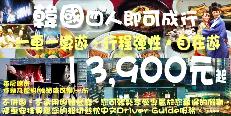 韓國【迷你小團 MiniTour】~ 美食美景半自助五日遊 四人成行、一車一導遊、行程彈性‧自在遊 好禮相送:每房贈送炸雞及飲料(啤酒或可樂)一份 18,800元 起 |